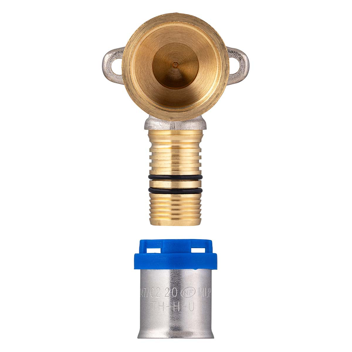 Pour raccorder un tube multicouche et créer un raccordement femelle fixé au mur, pour une machine à laver ou tout autre appareil