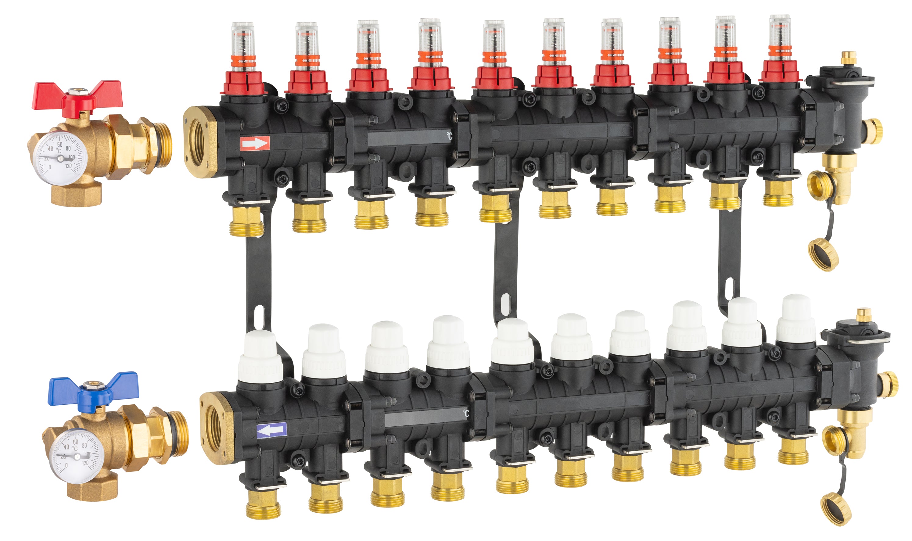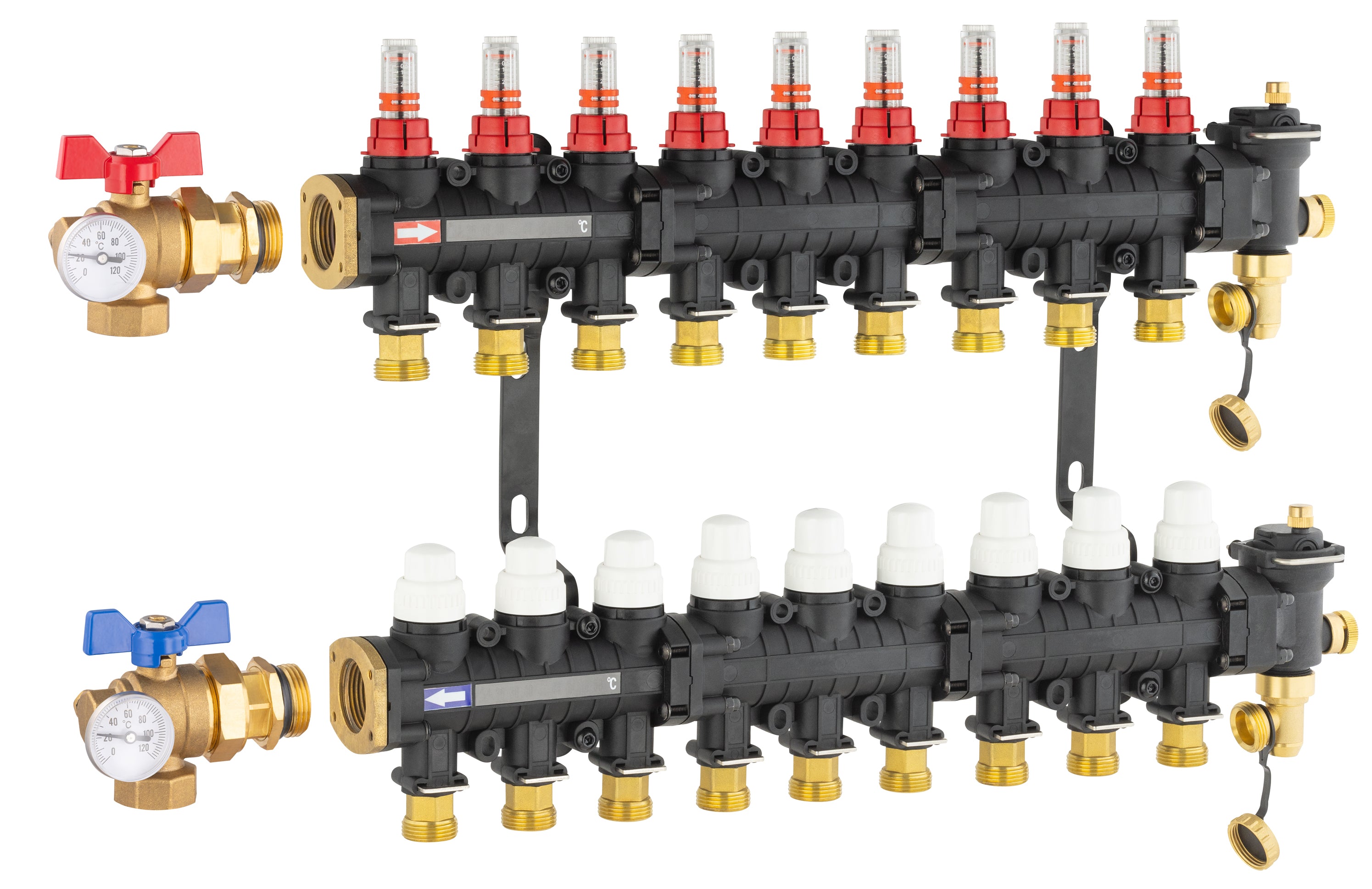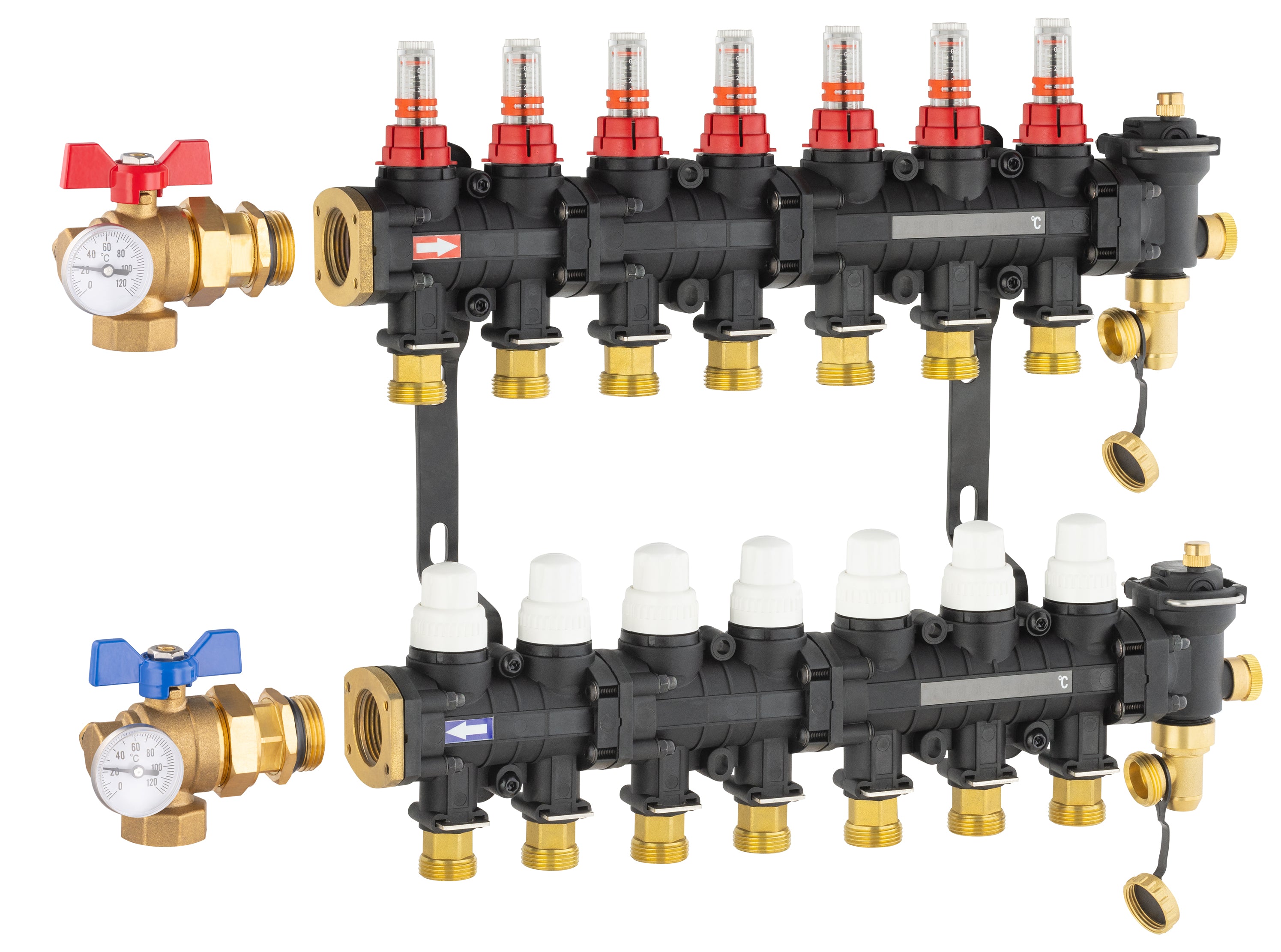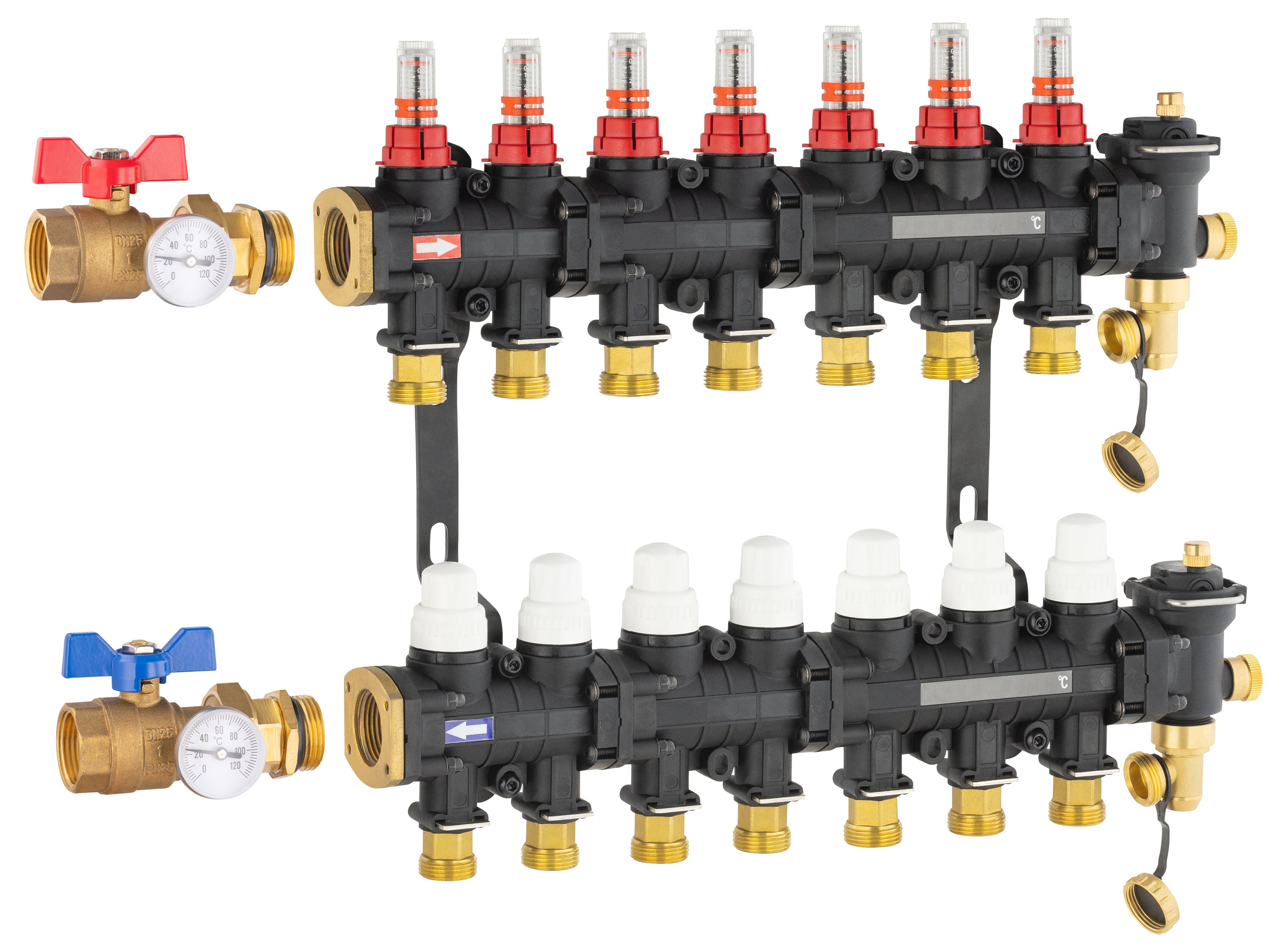 Chaque départ du collecteur est équipé d'un débitmètre, permettant ainsi l'équilibrage des boucles par une simple rotation des débitmètres. Des bagues de marquage du débit sont également incluses pour faciliter le réglage et la gestion du débit sur chaque boucle