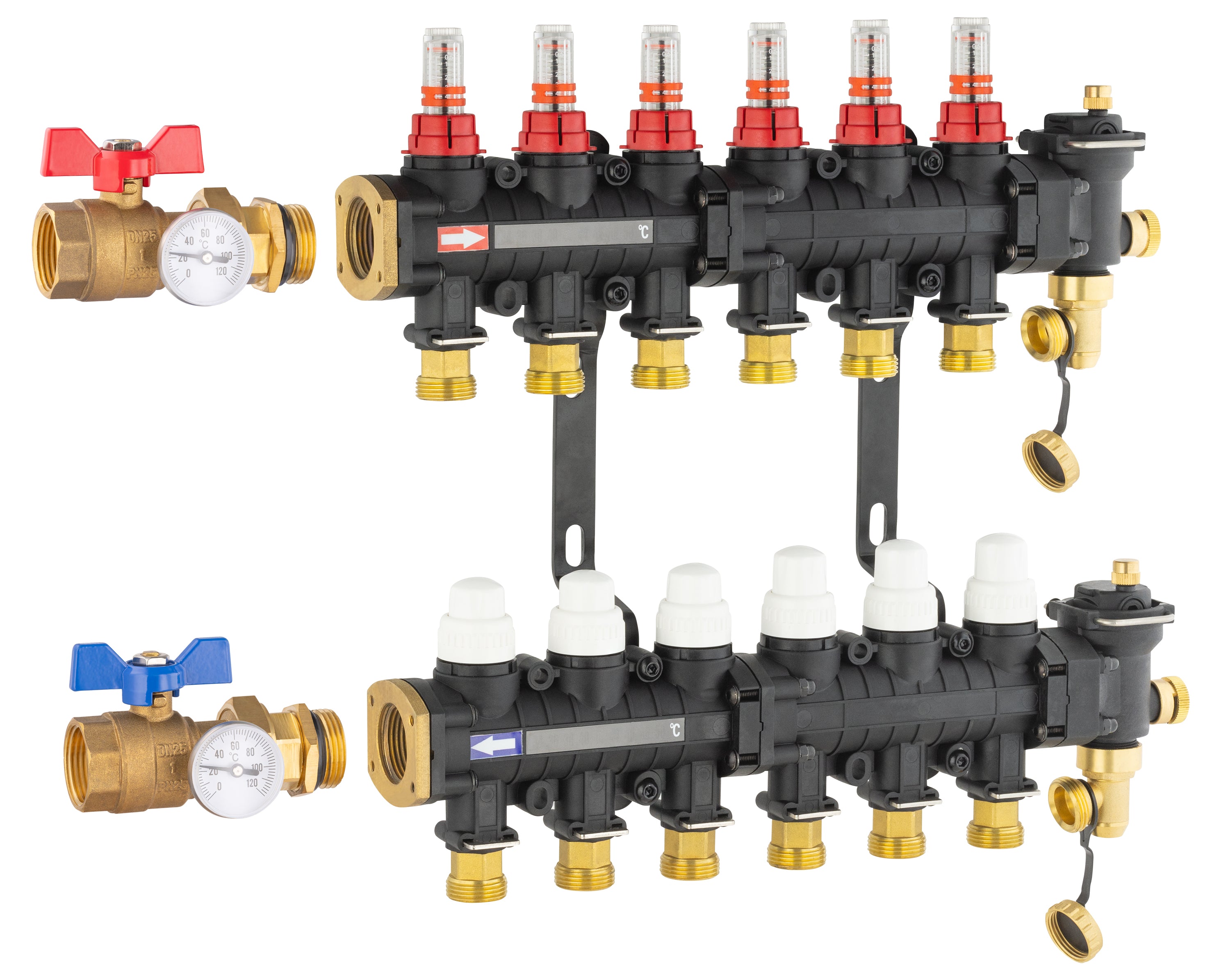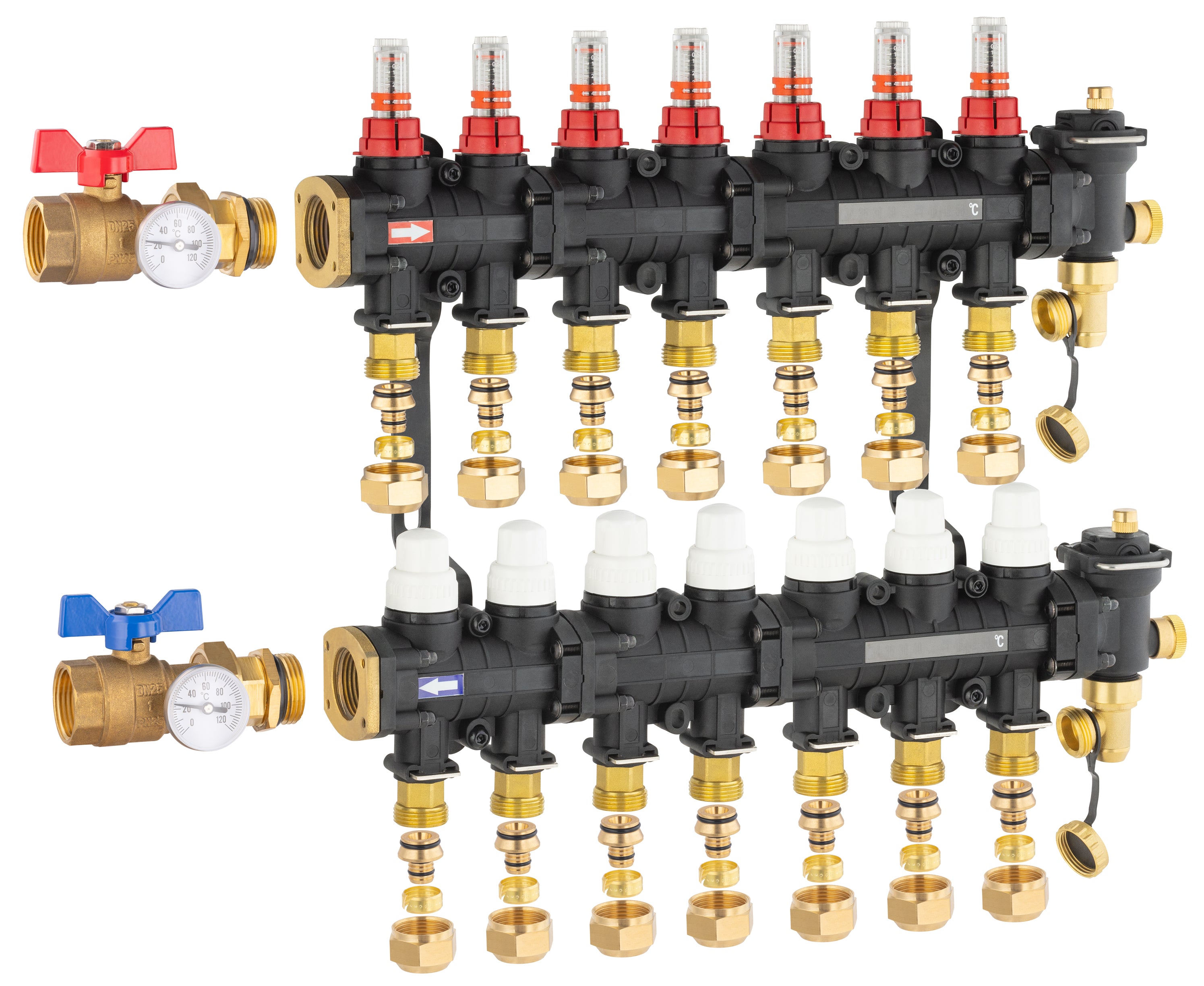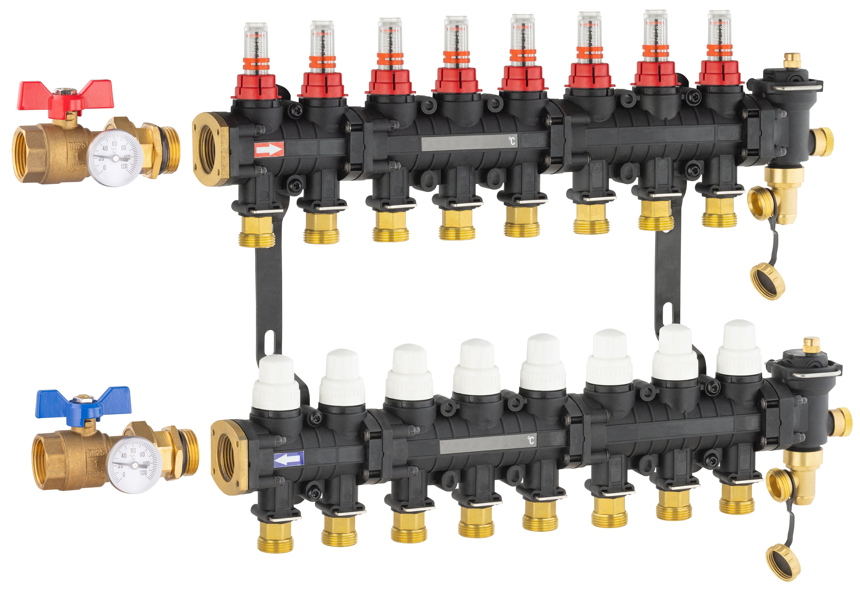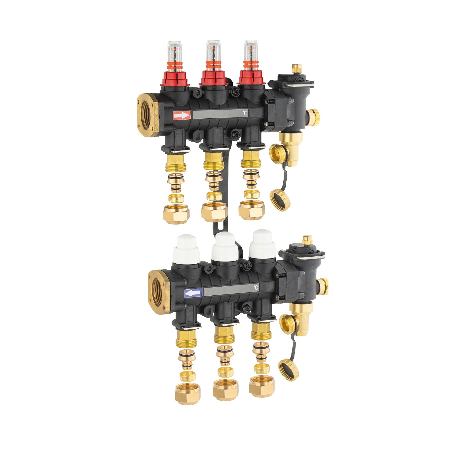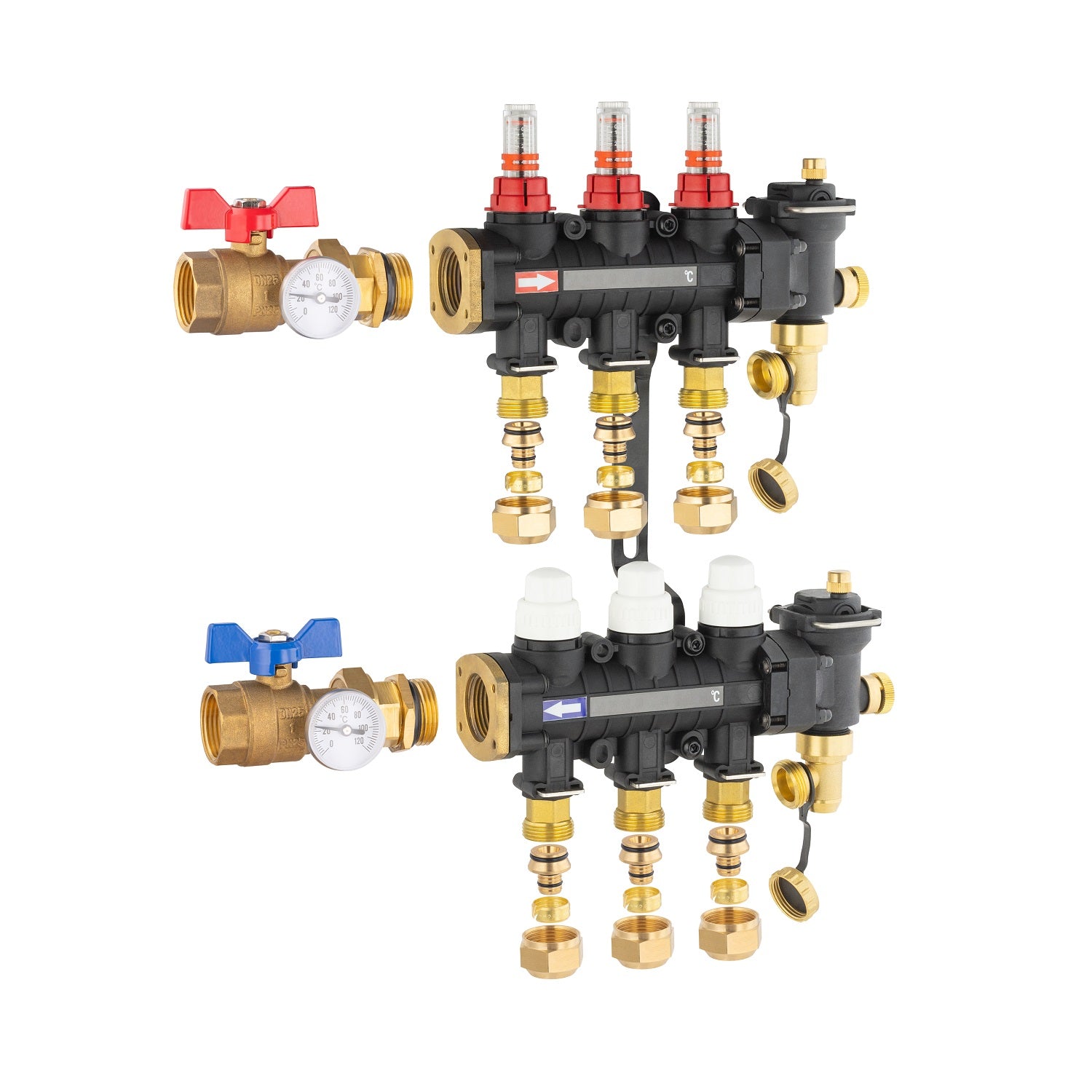 Chaque départ du collecteur est équipé d'un débitmètre, permettant ainsi l'équilibrage des boucles par une simple rotation des débitmètres. Des bagues de marquage du débit sont également incluses pour faciliter le réglage et la gestion du débit sur chaque boucle