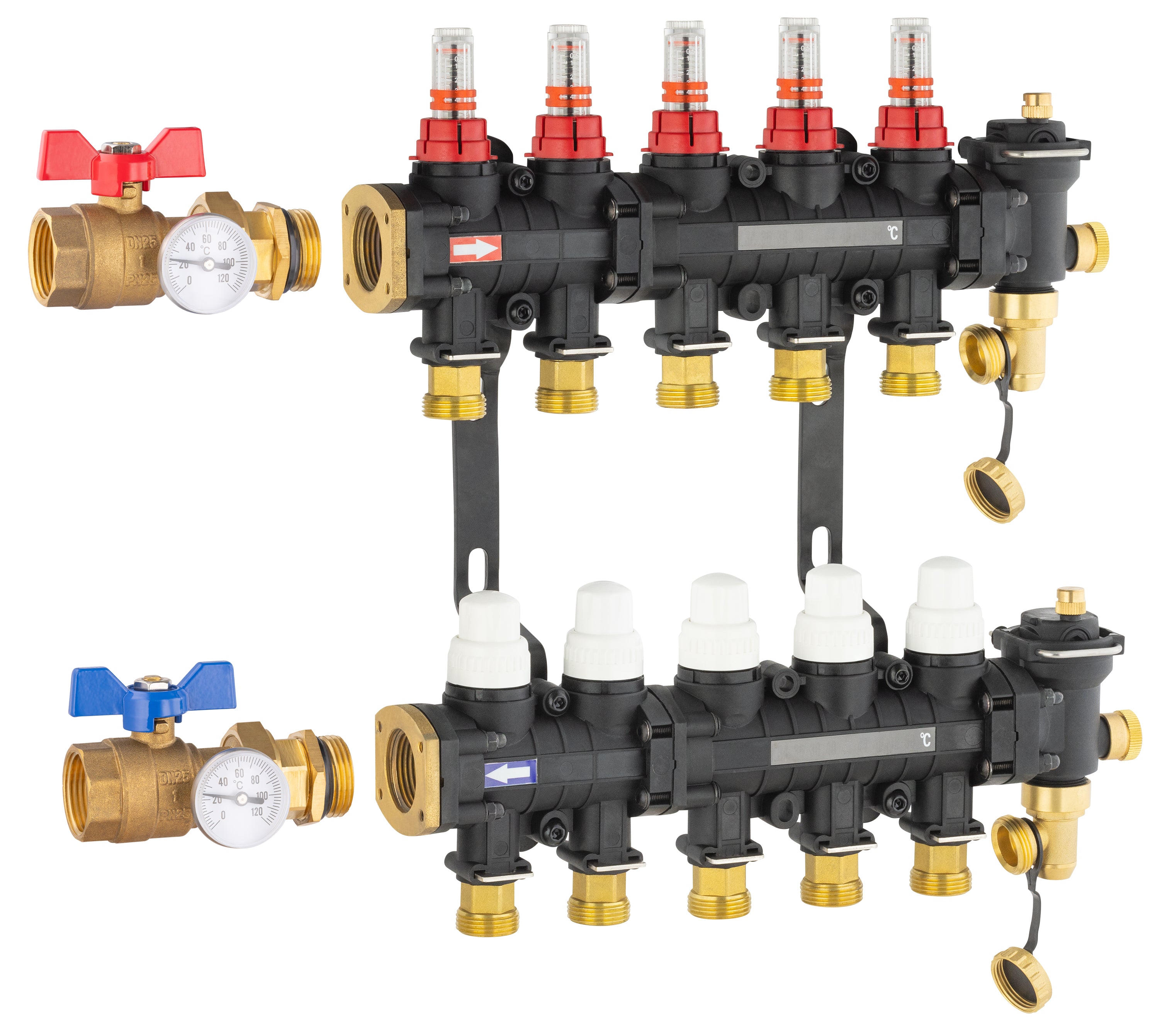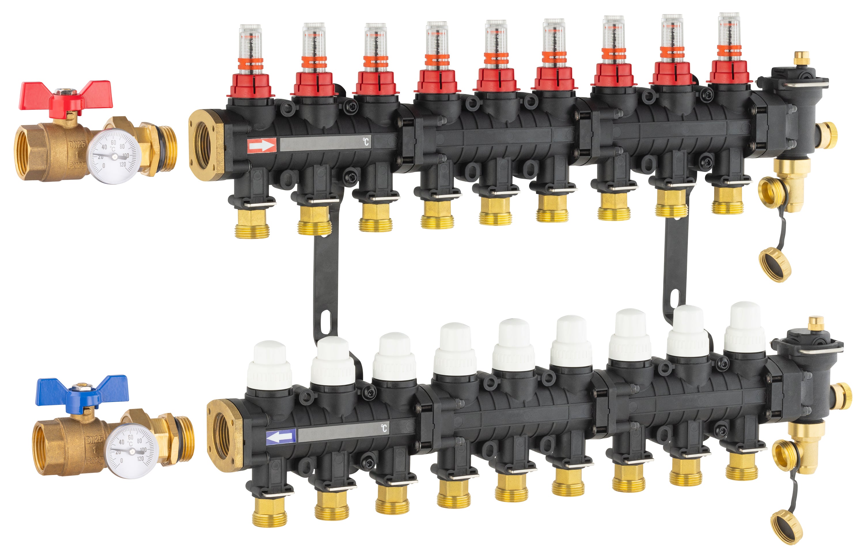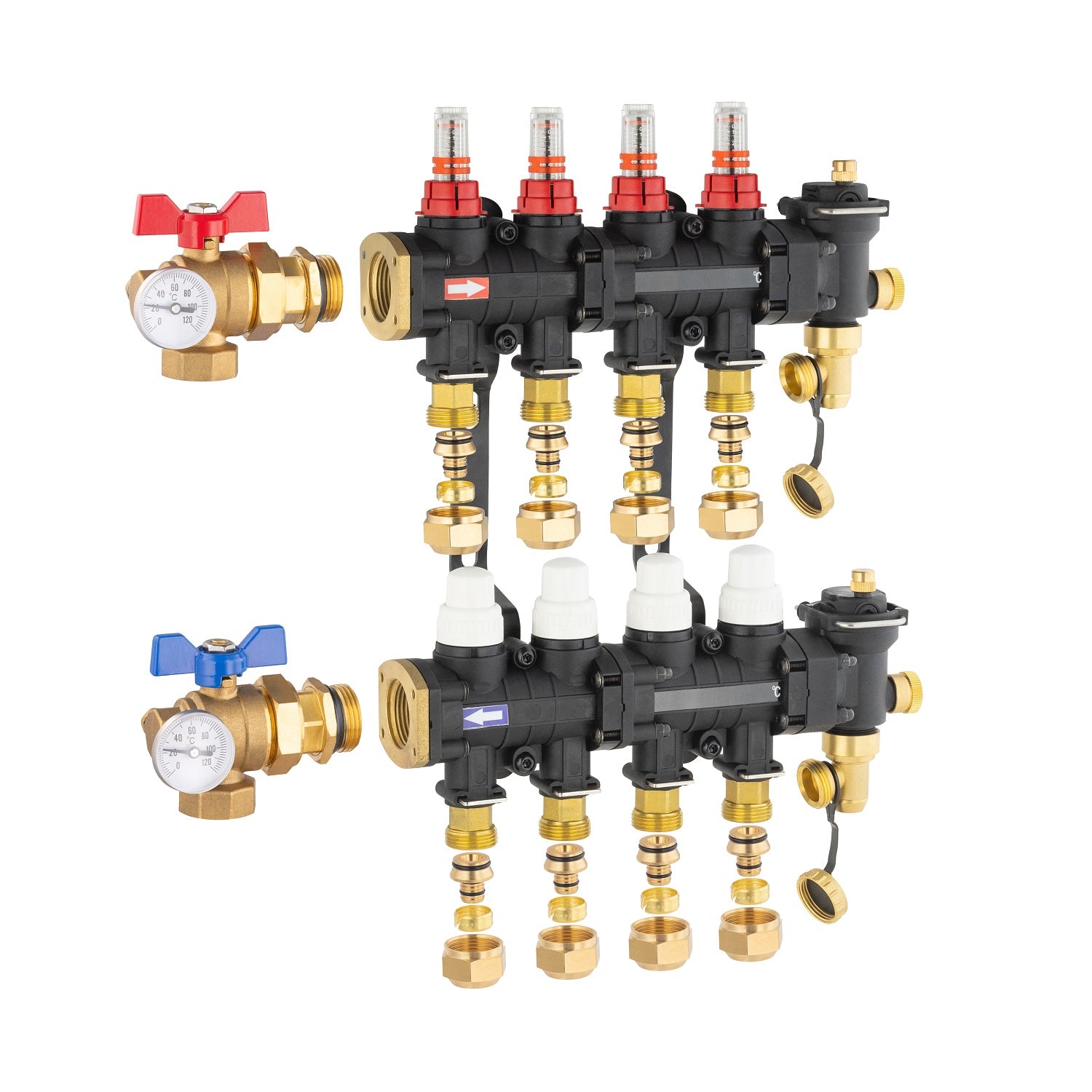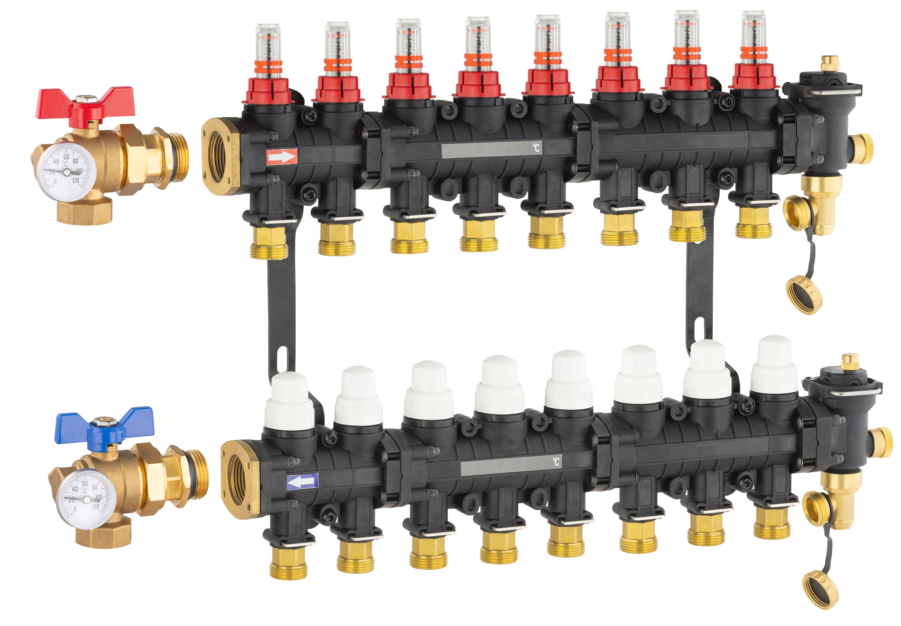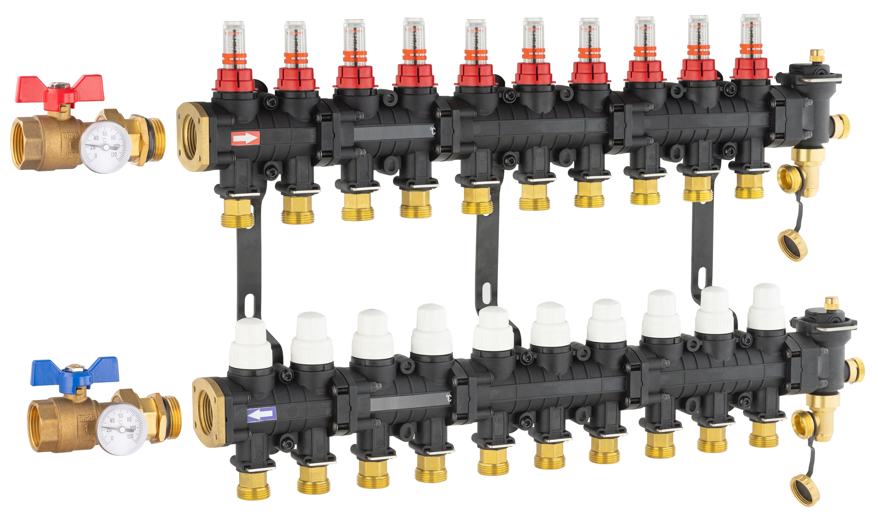 Chaque départ du collecteur est équipé d'un débitmètre, permettant ainsi l'équilibrage des boucles par une simple rotation des débitmètres. Des bagues de marquage du débit sont également incluses pour faciliter le réglage et la gestion du débit sur chaque boucle