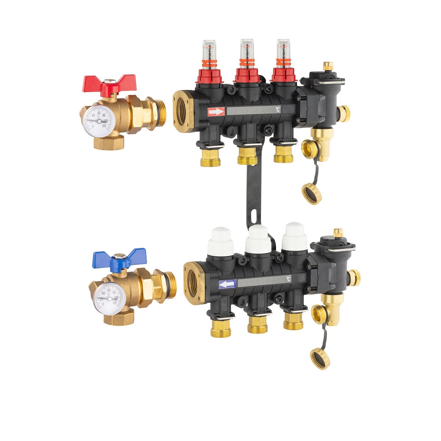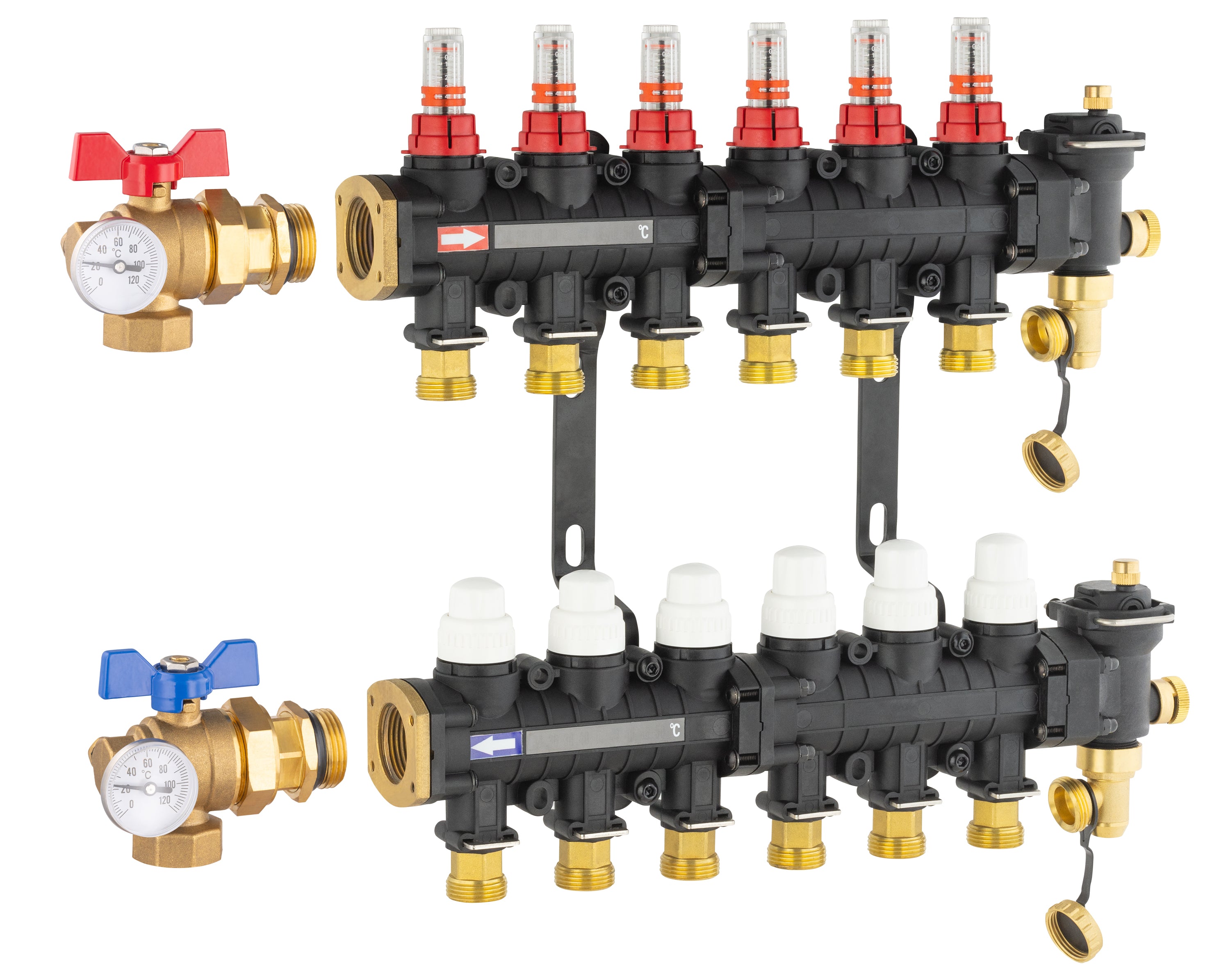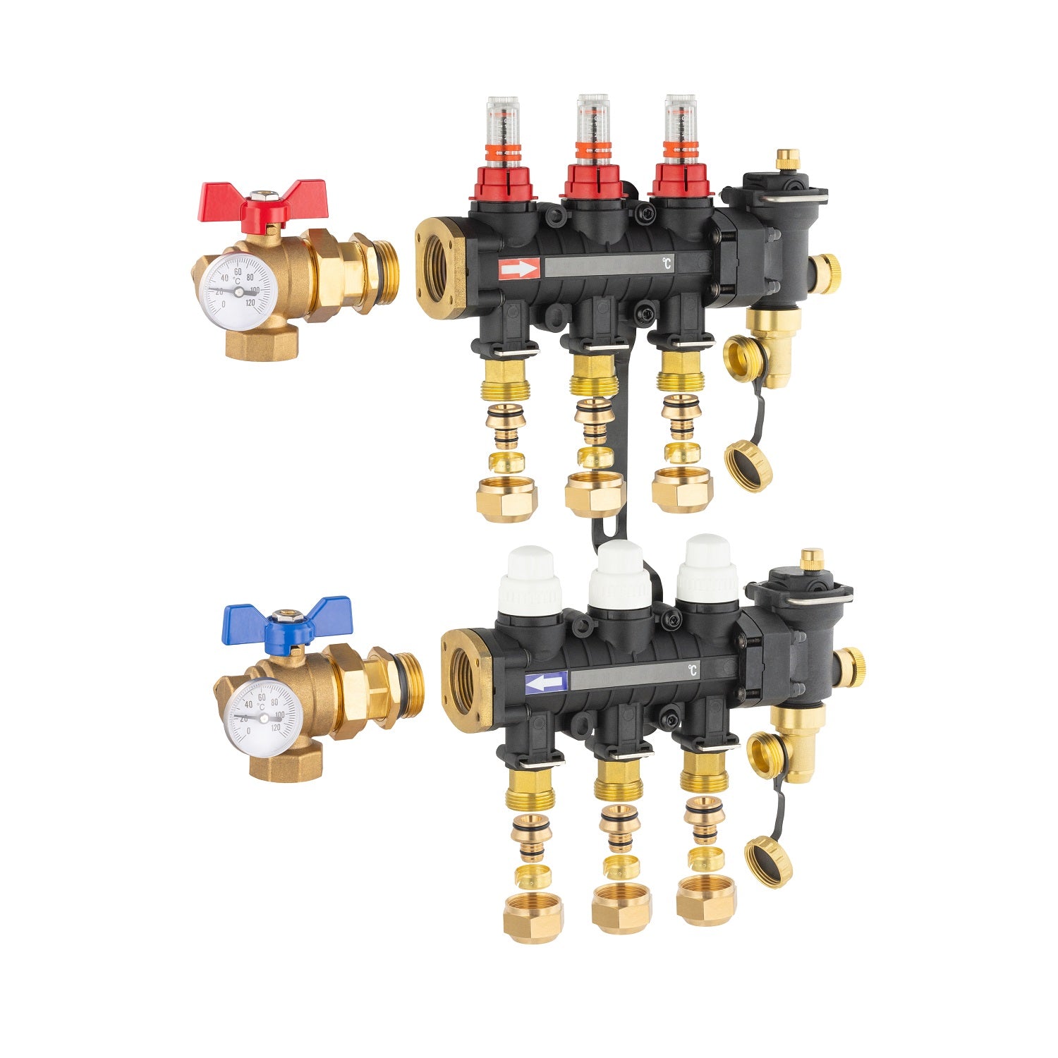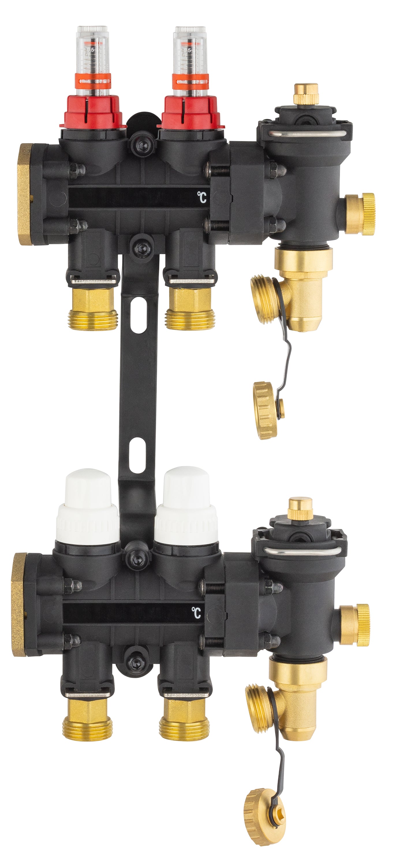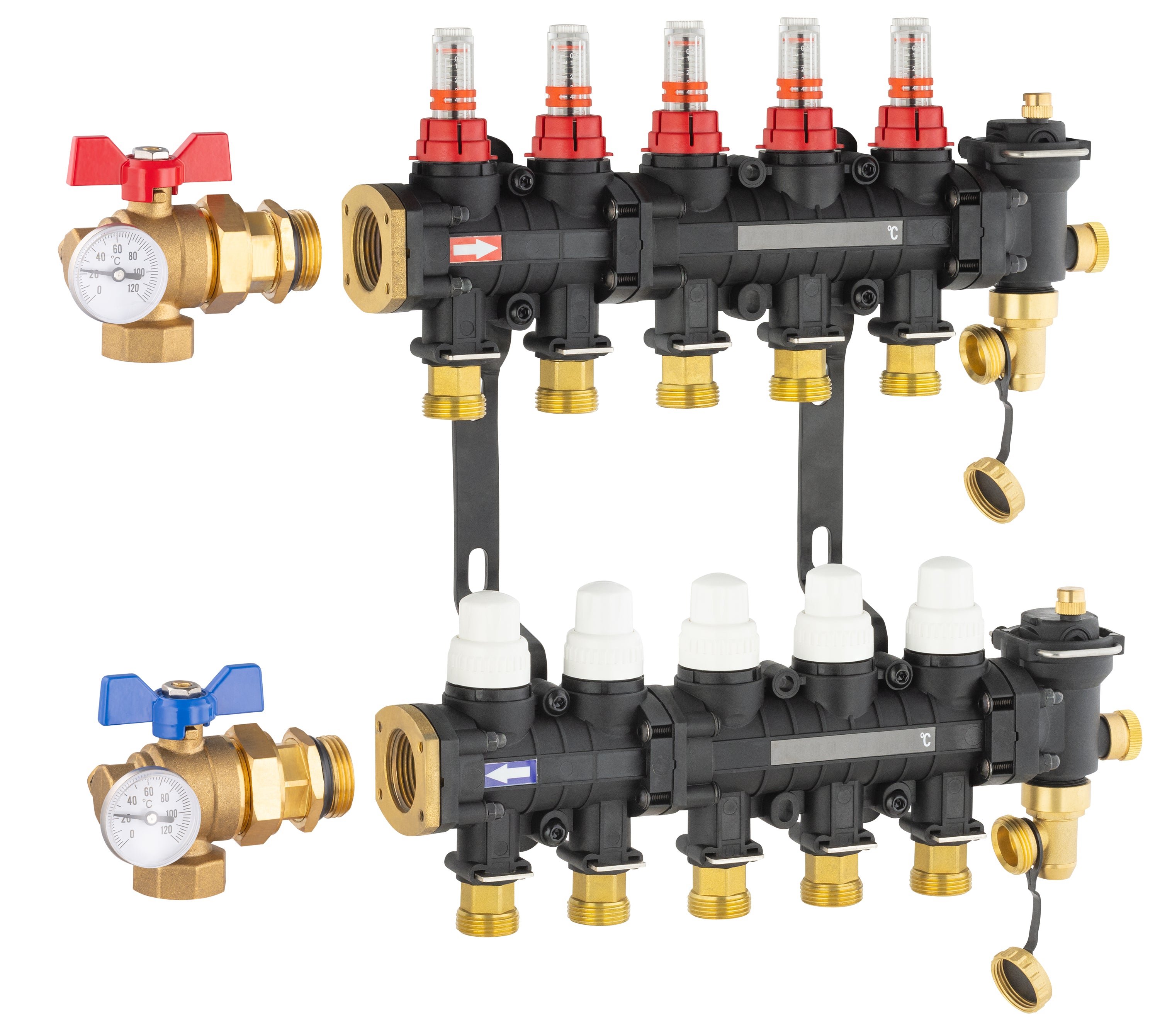 Chaque départ du collecteur est équipé d'un débitmètre, permettant ainsi l'équilibrage des boucles par une simple rotation des débitmètres. Des bagues de marquage du débit sont également incluses pour faciliter le réglage et la gestion du débit sur chaque boucle