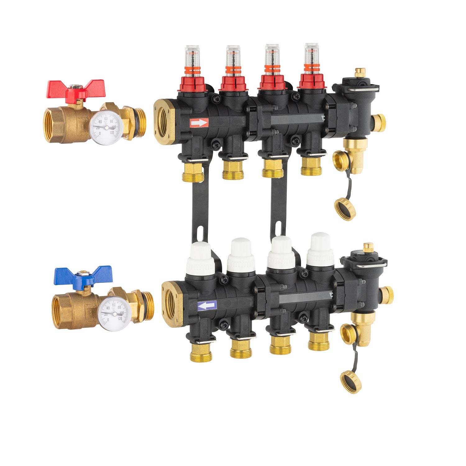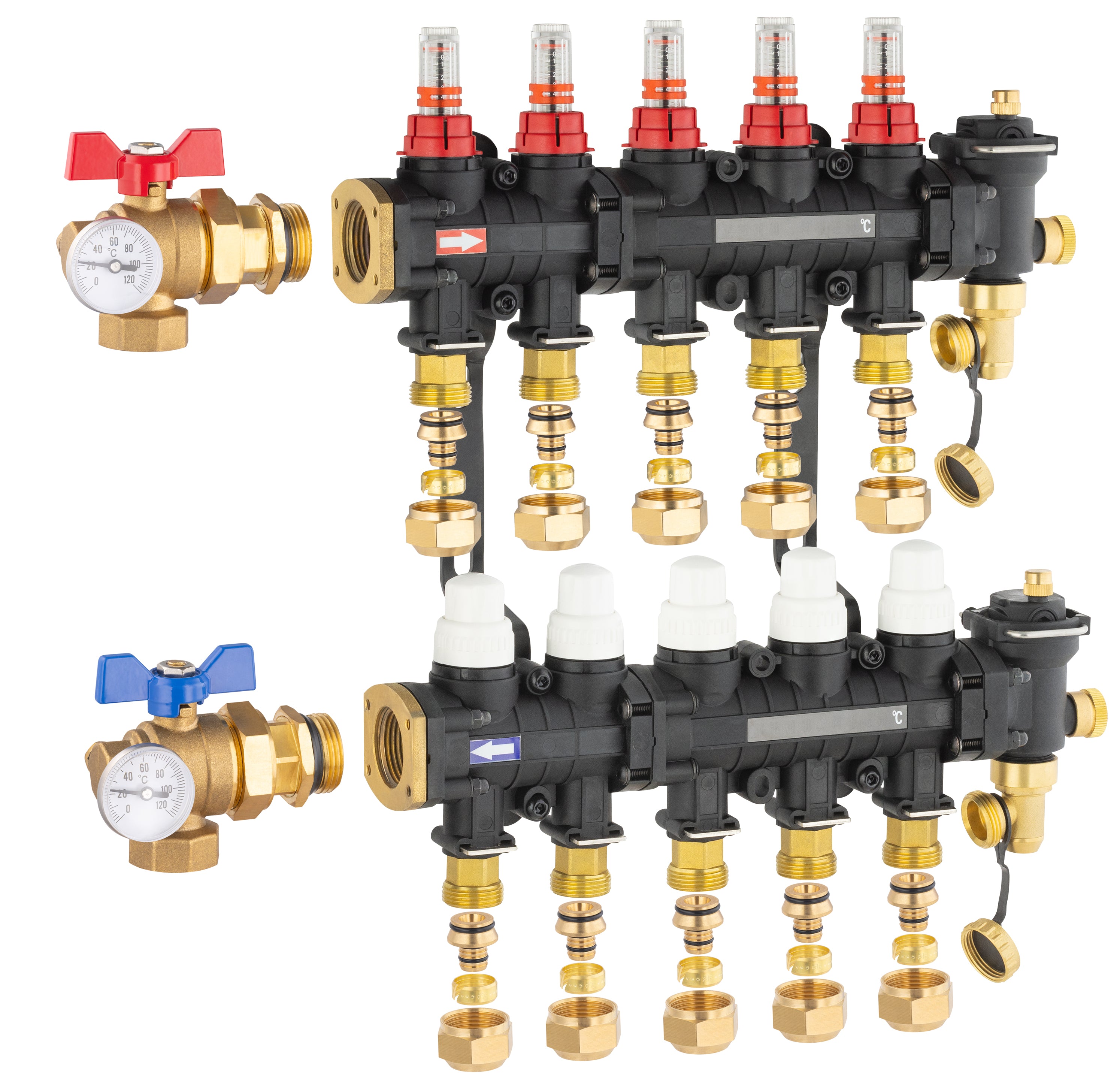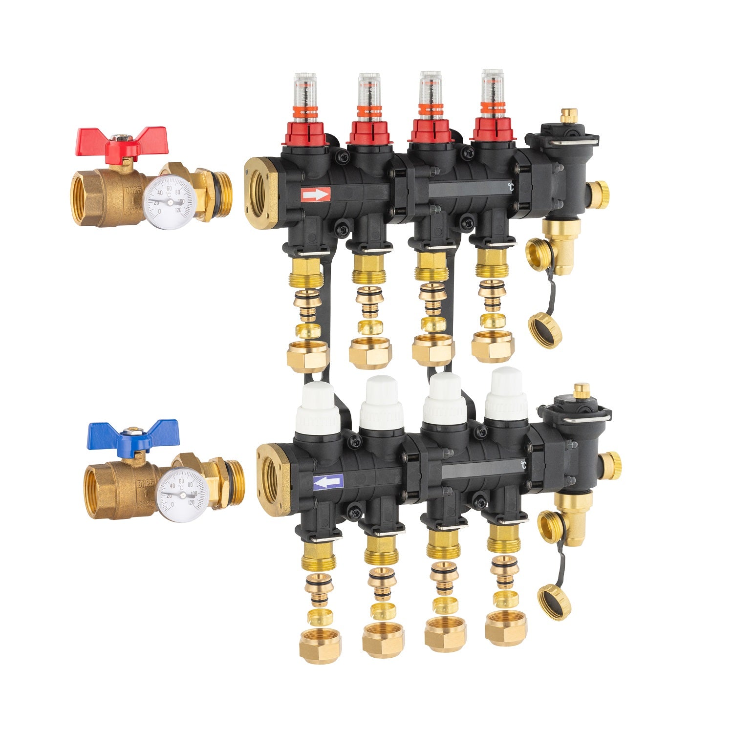 Les retours des boucles sont thermostatisables, grâce au pas de vis M30x1.5 (standard), ce qui vous permet de personnaliser facilement la température dans chaque espace de votre maison, offrant un contrôle précis de la température dans chaque pièce, compatible avec l’installation de thermostats