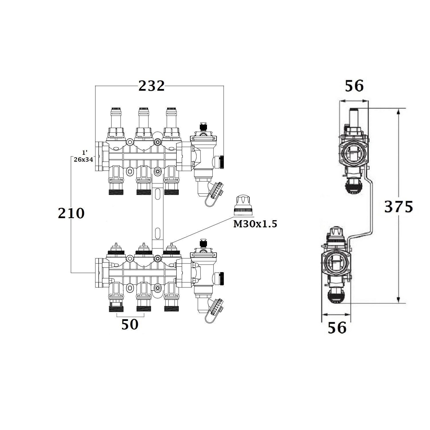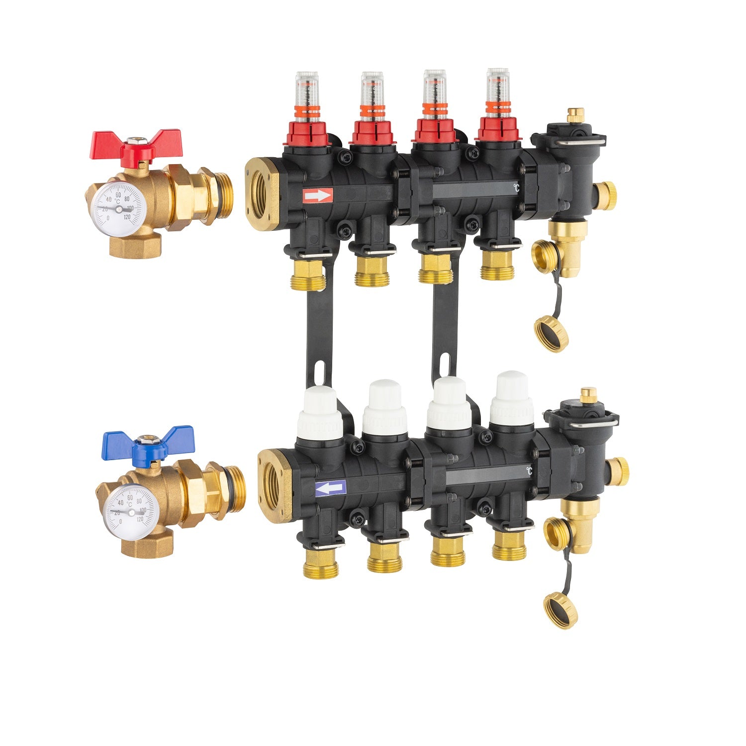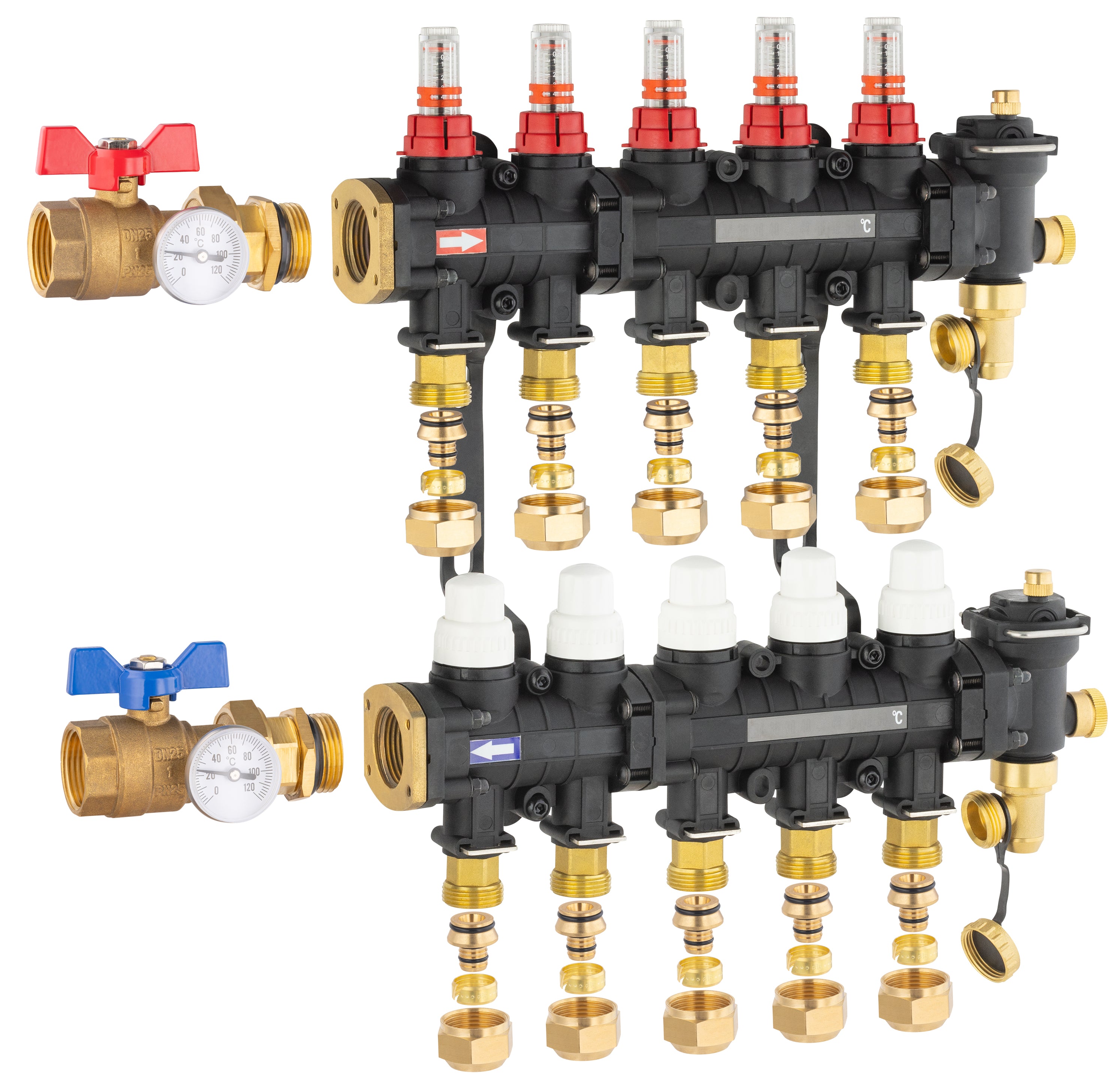 Les retours des boucles sont thermostatisables, grâce au pas de vis M30x1.5 (standard), ce qui vous permet de personnaliser facilement la température dans chaque espace de votre maison, offrant un contrôle précis de la température dans chaque pièce, compatible avec l’installation de thermostats