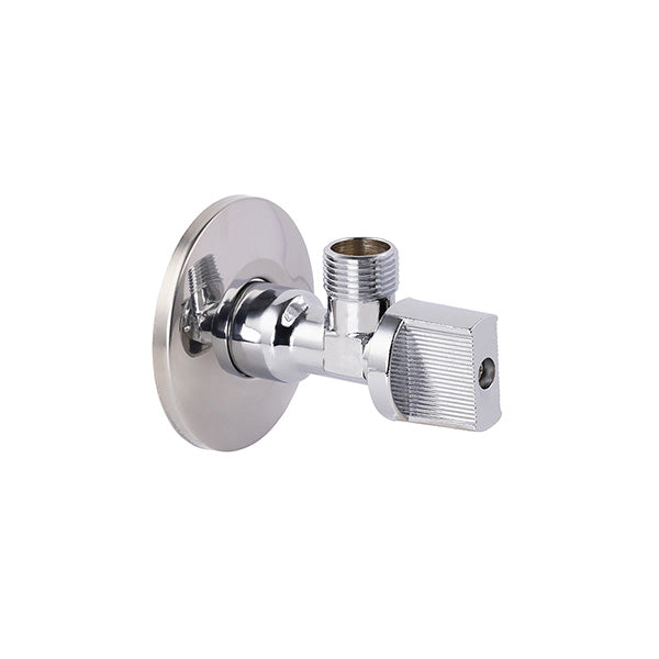 Robinet d'arrêt équerre avec rosace de finition, ensemble chromé, idéal pour isoler l'alimentation en eau d'un appareil sanitaire